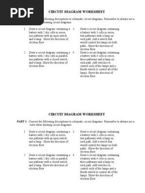 Drawing circuit diagrams worksheet pdf. You will learn much more by actually building and analyzing real circuits letting your test equipment provide the answers instead of a book. You can use these software for making the electrical design of buildings or design of a specific electrical circuit. In science physical sciences electricity. You can use this for ks3 or even ks4 i just use it to get pupils drawing series and parallel circuits with emphasis on the position of voltmeters and the terminals on the battery. You can adapt this worksheet to your liking. Understands basic types of electrical drawings can produce a floor plan that displays understanding knows the difference between a circuit drawing and a wiring diagram draws and understands a wiring diagram extension activity draw more wiring diagrams that include more devices in different configurations.