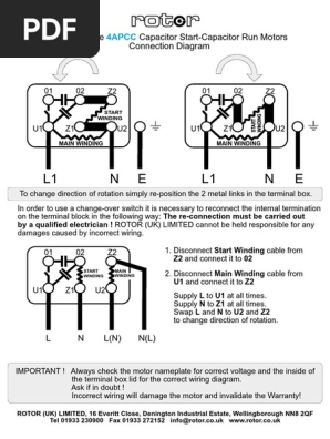 The reconnection must be carried out by qualified electrician. Capacitor start capacitor run induction motors are single phase induction motors that have a capacitor in the start winding and in the run winding as shown in figure 12 and 13 wiring diagram. Click on the image to enlarge and then save it to your computer. 3 mounting 1 mount motor securely on a firm flat base. Single phase capacitor start capacitor run motor wiring diagram single phase motor wiring diagram with capacitor. The basic diagram view a shows a circle with two leads labeled t1 and t2.